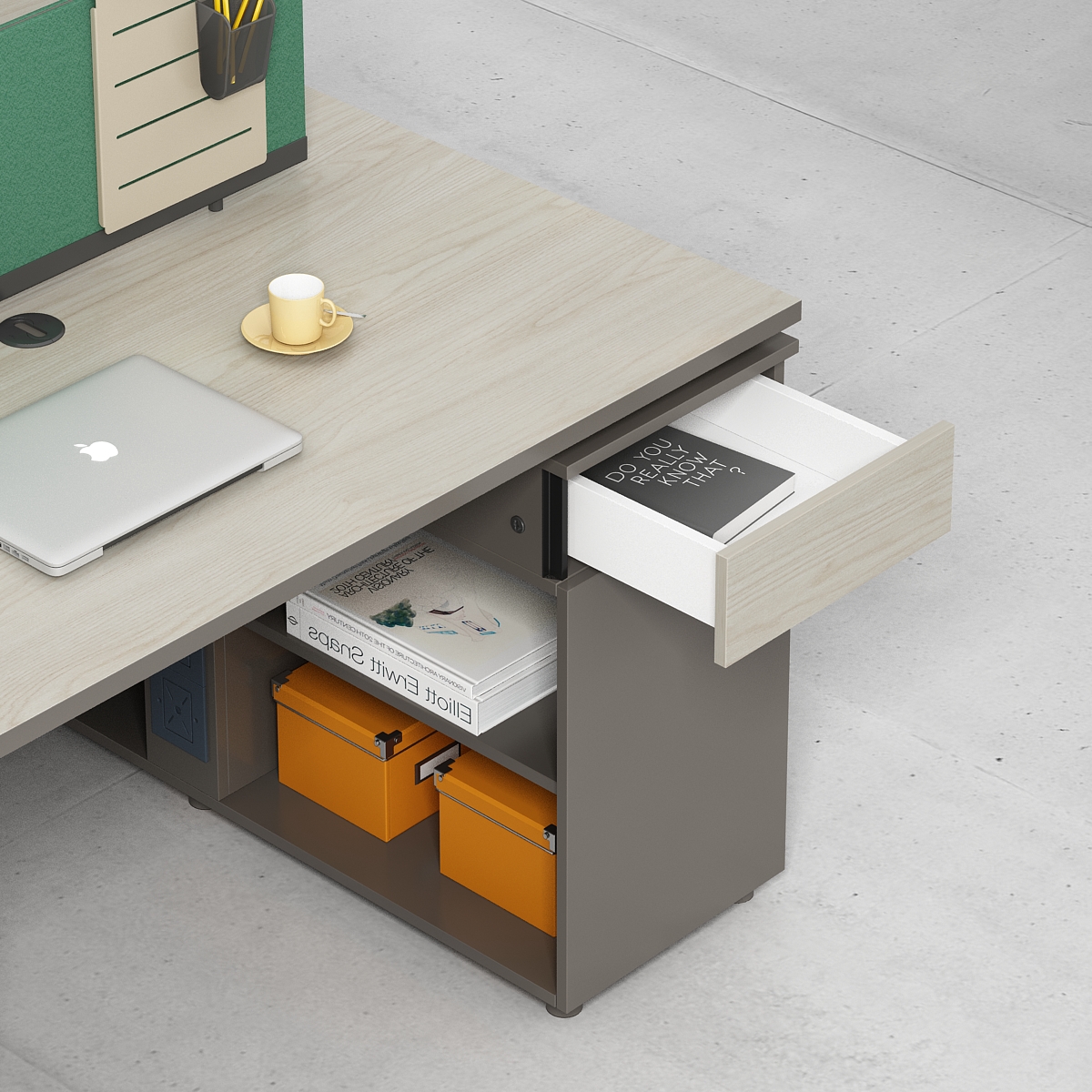 国際ブランド「豊林(フェンリン)」の高品質E0級環境保護高密度刨花板を採用しています。ホルムアルデヒド放出量が厳しい基準を満たし、人体への危害がなく、長期的な使用に耐えられる優れた強度と耐久性を備え、オフィスの健康な環境を守ります。