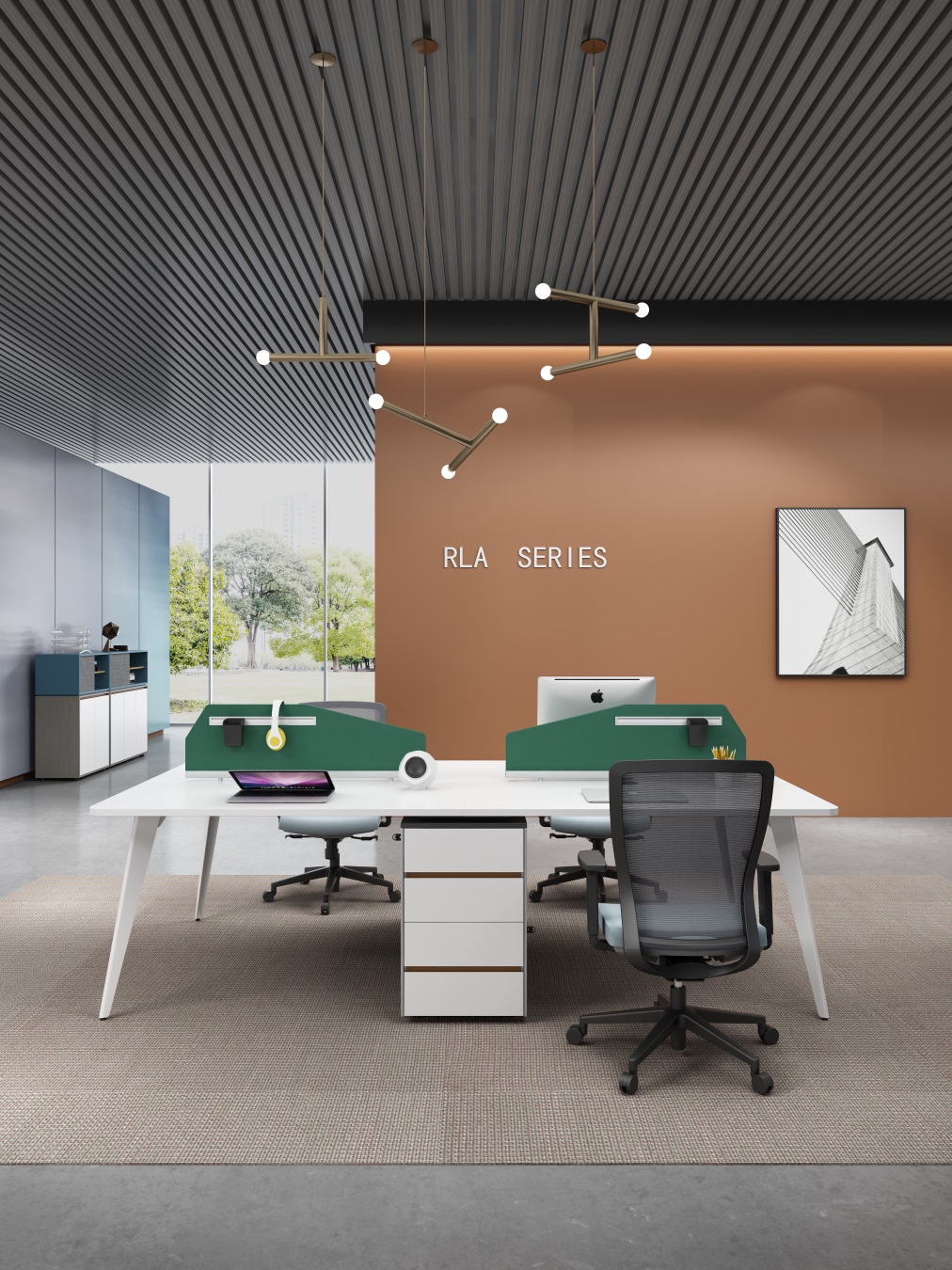 1. 接続方式:45度拼接構造、ラミノ接続方式を採用、外観が精緻、工艺が高端;2. 引出し:側面に引出し2つを配置、小物収納に便利;3. 内部設計:二層構造、取り外し可能な中板を装備、パソコンホストの配置に応じて調整可、空間利用率を最大化;4. 高さ調整:付属キャビネットの脚とテーブル脚に高さ調整機能があり、床面の凹凸に対応可能;5. 配線・コンセント:キャビネット内に86型コンセント装飾ボックスを内蔵、每人3つの86型コンセント取り付け孔(標準86mm×86mm)と配線通路を設計、各種デバイスの電源接続と配線整理に便利。