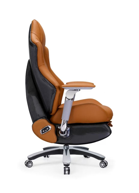 アルミニウム合金専利6D肘掛け+本革肘掛け面を採用し、多方向に調整可能で耐用性に優れます。本革の触り心地が柔らかく、人体工学に基づく設計で、長時間ゲーミング時の腕の負担を最大限に軽減します。