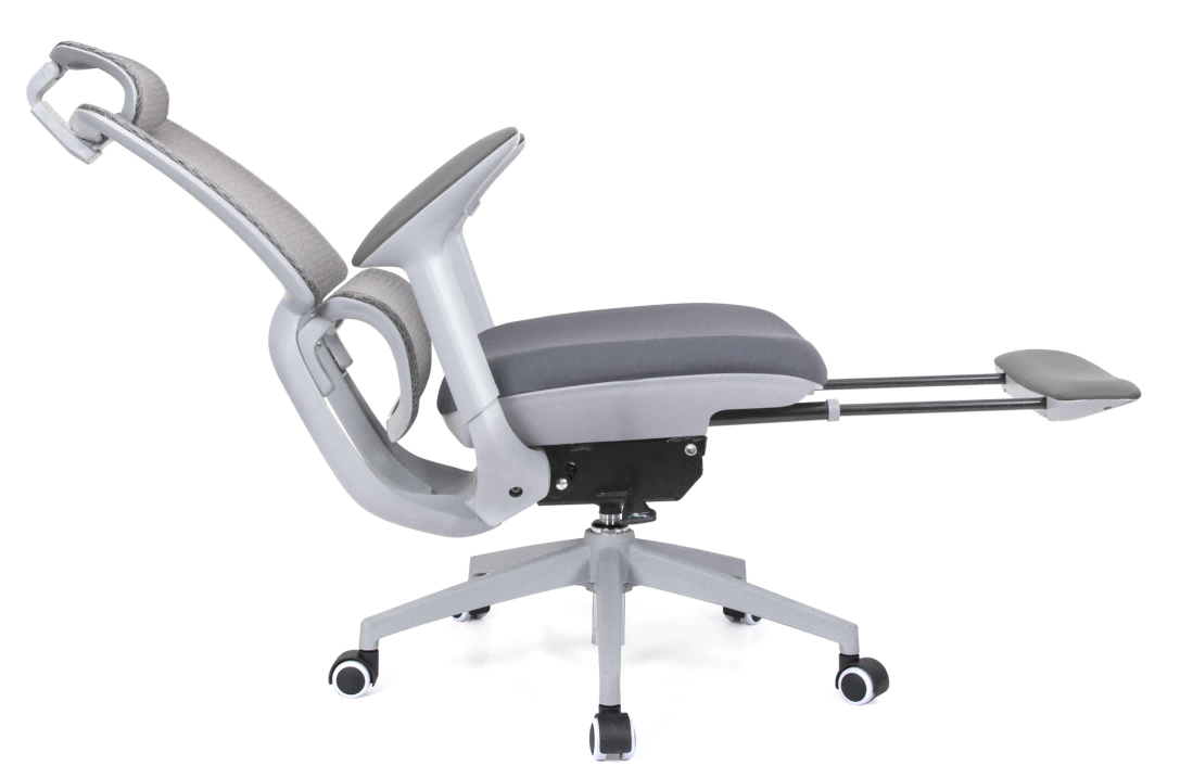 任意調整シャーシ、底殻付き、ダブルレバーPUレザー面フットレスト付き、最大午休リクライニング角度160度(角度を自由に調整可能、底殻で保護、PUレザー面フットレストで足元を支え、160度までリクライニングして快適に午休可能)